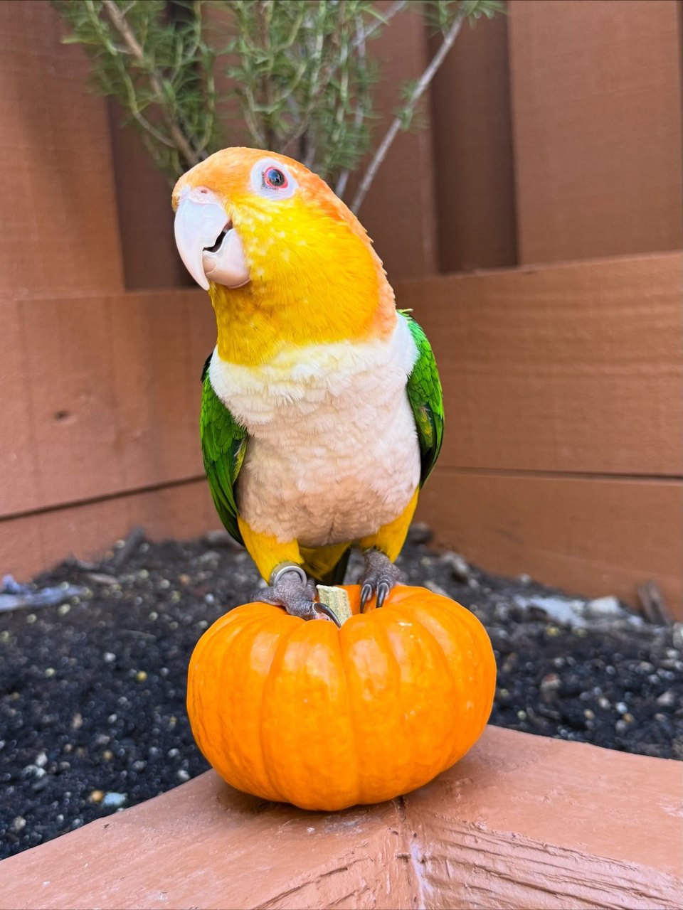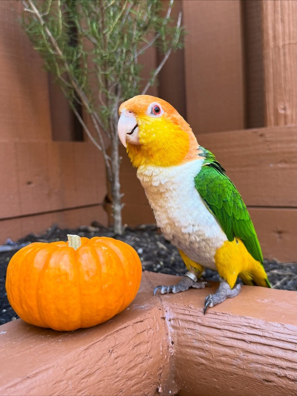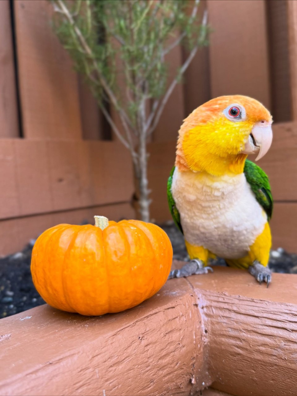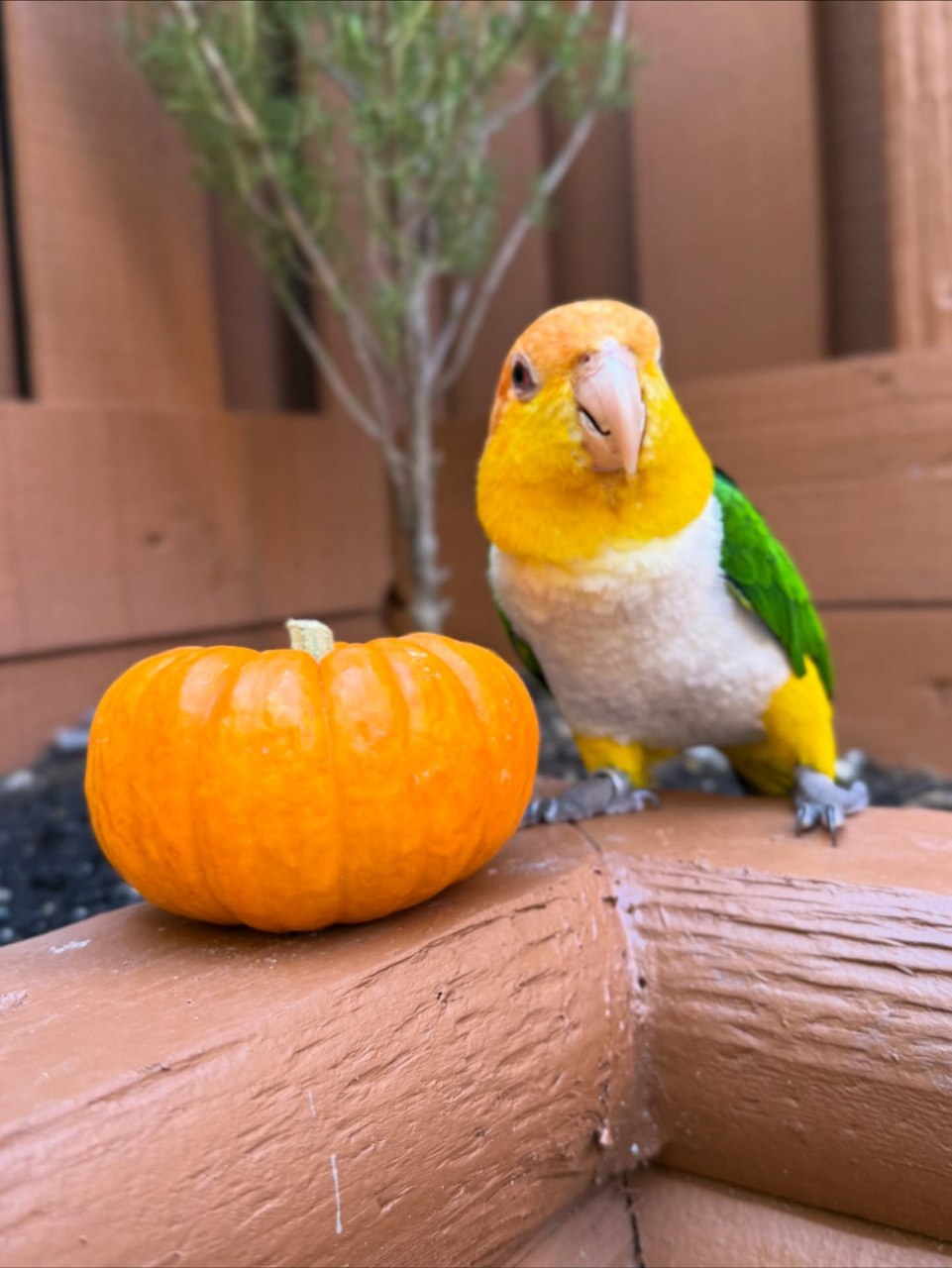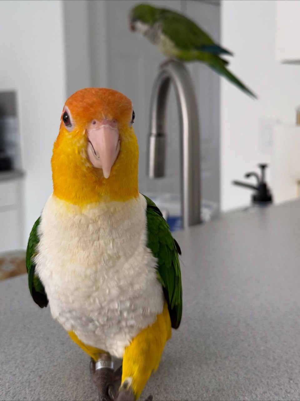 Unlike many parrots that prefer observing from a distance, caiques are active participants in family life. Adele loves attention, playtime, and exploring her surroundings.