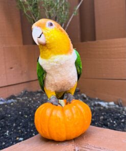 White-bellied caiques are often called “the clowns of the parrot world” because of their playful nature and entertaining behavior. Adele perfectly represents everything people love about this remarkable species. She is curious, interactive, and full of energy, making her an ideal companion for bird lovers who want a social and engaging pet.