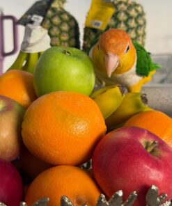 Proper nutrition is essential for maintaining his vibrant feathers and energetic personality.