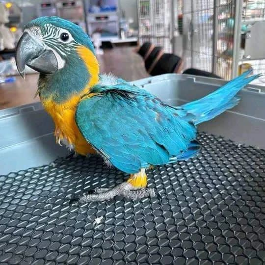 Meet Ava, a stunning Blue and Gold Macaw with a radiant personality and breathtaking plumage. Her vivid turquoise-blue wings, golden chest, and intelligent eyes make her one of the most beautiful and social parrots available for adoption/sale.