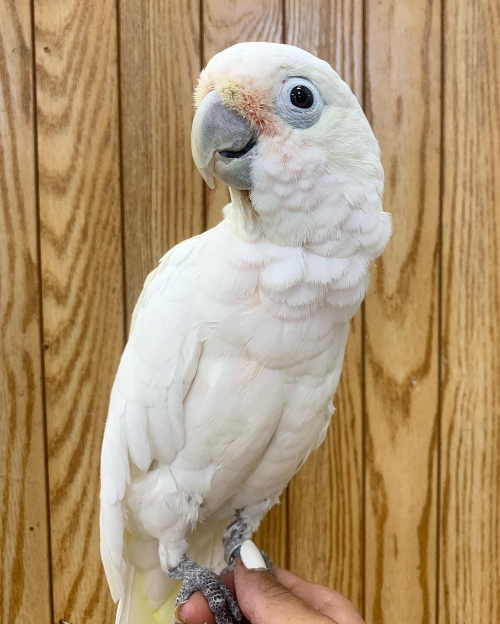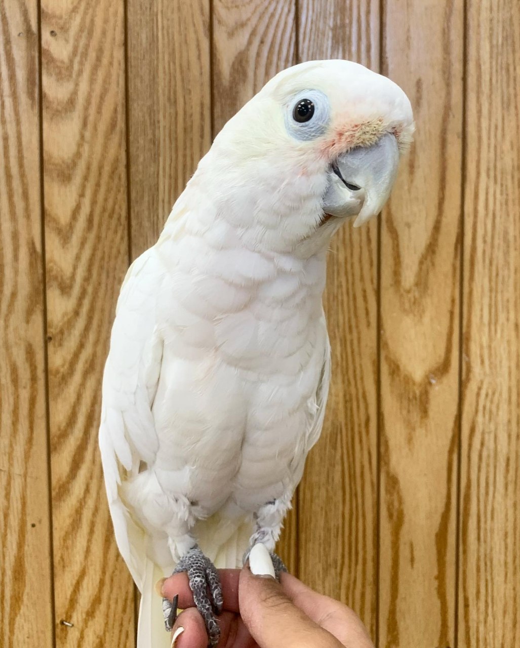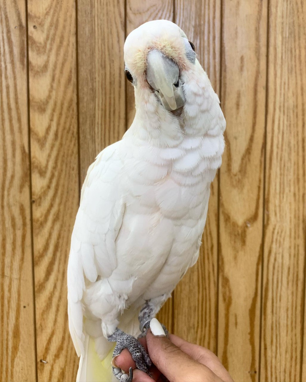 His personality is highly engaging. White Cockatoos are known for being intelligent, social, and highly affectionate, and He exemplifies these traits beautifully.