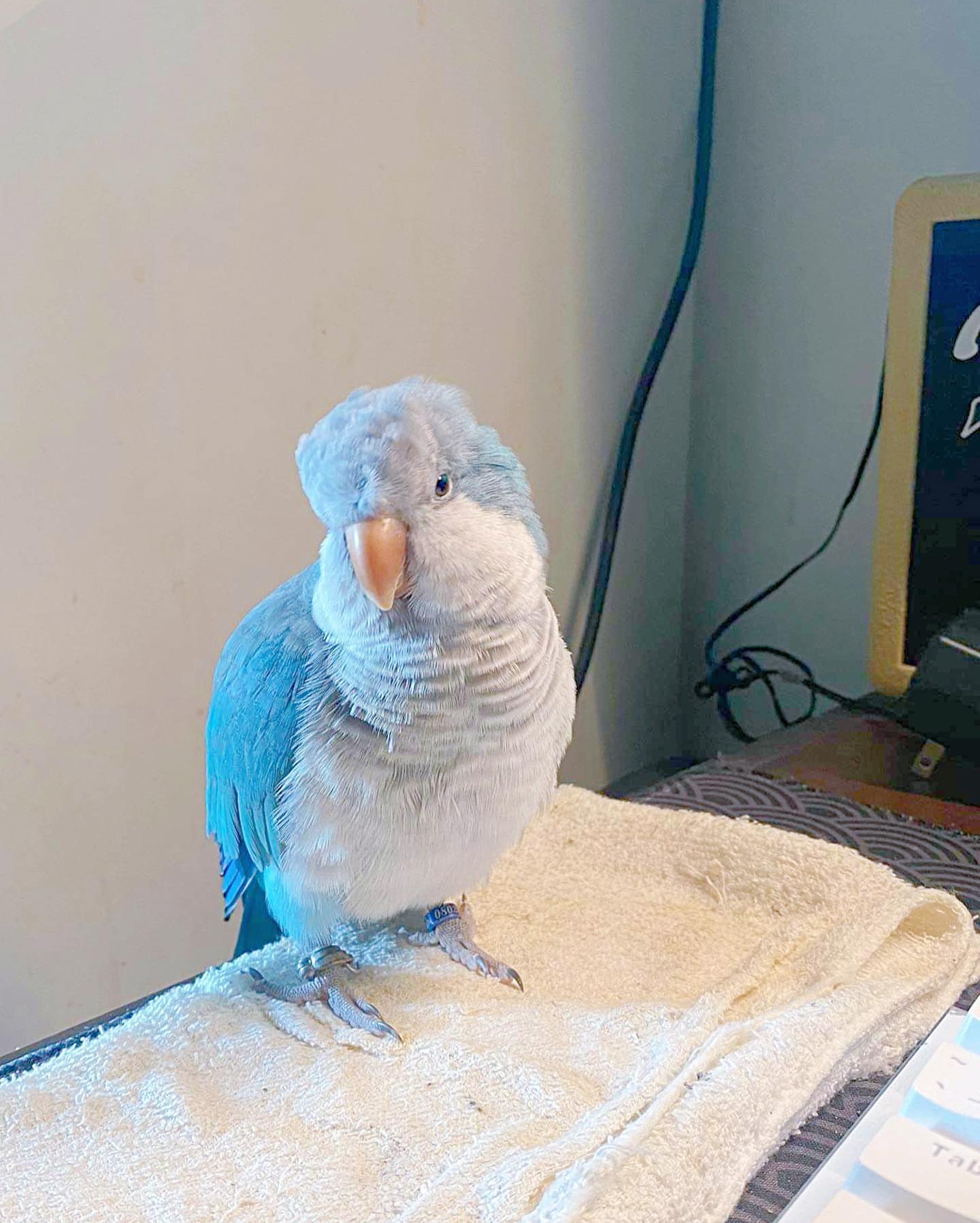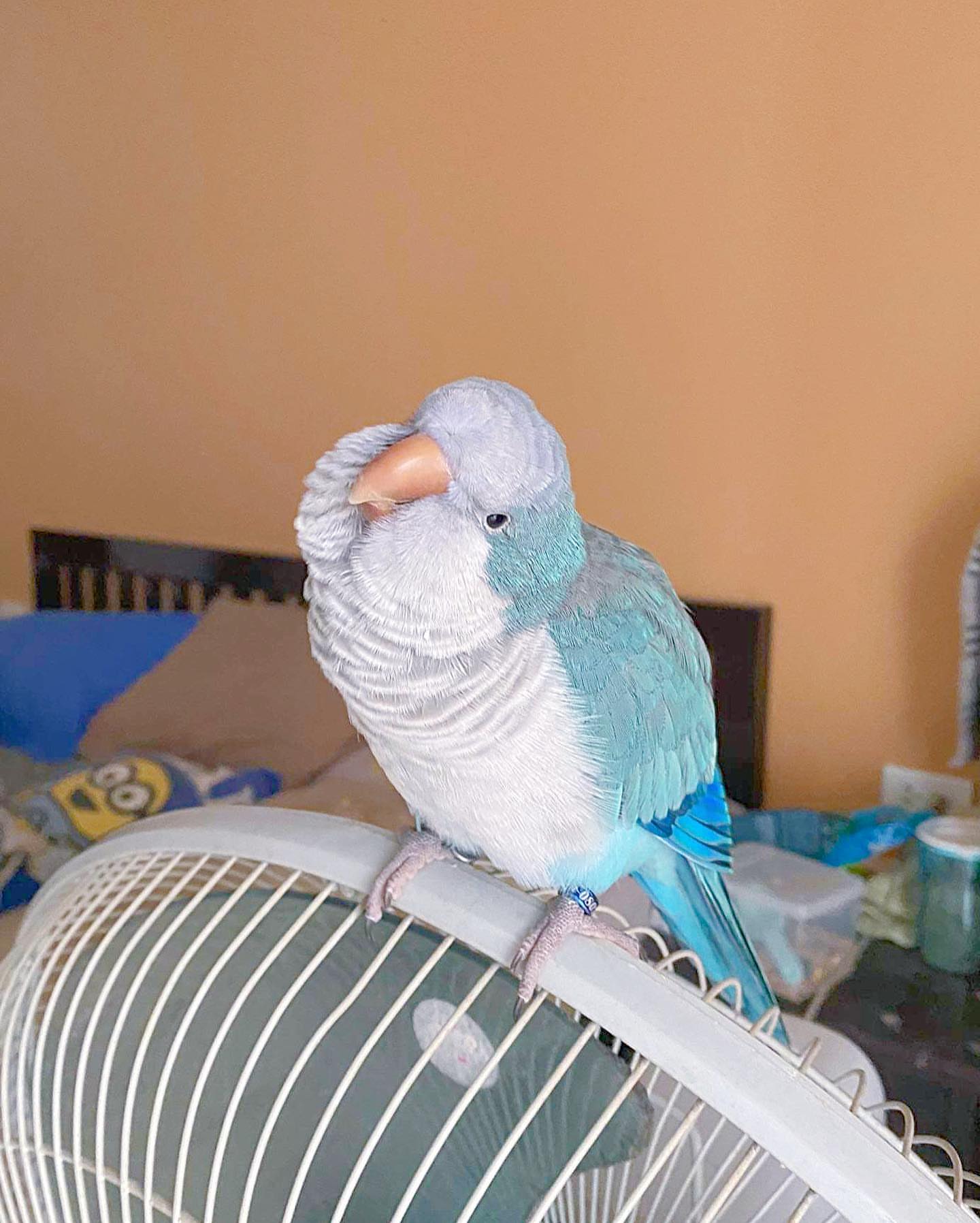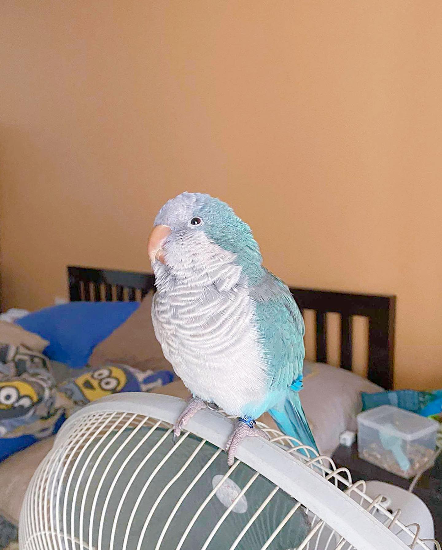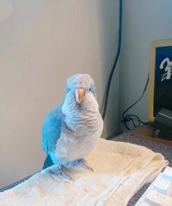 Known for their intelligence and talking ability, Blue Quaker Parrots like He make excellent companions for families, first-time parrot owners, and parrot enthusiasts alike.