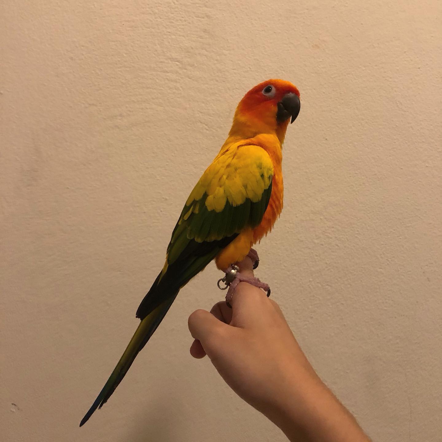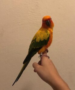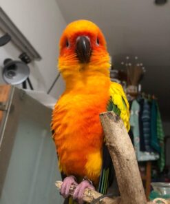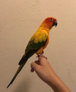 Sun Conures are known for their loving nature, and She is no exception. She bonds closely with her humans, enjoys cuddles, and thrives in homes that give her attention and affection.