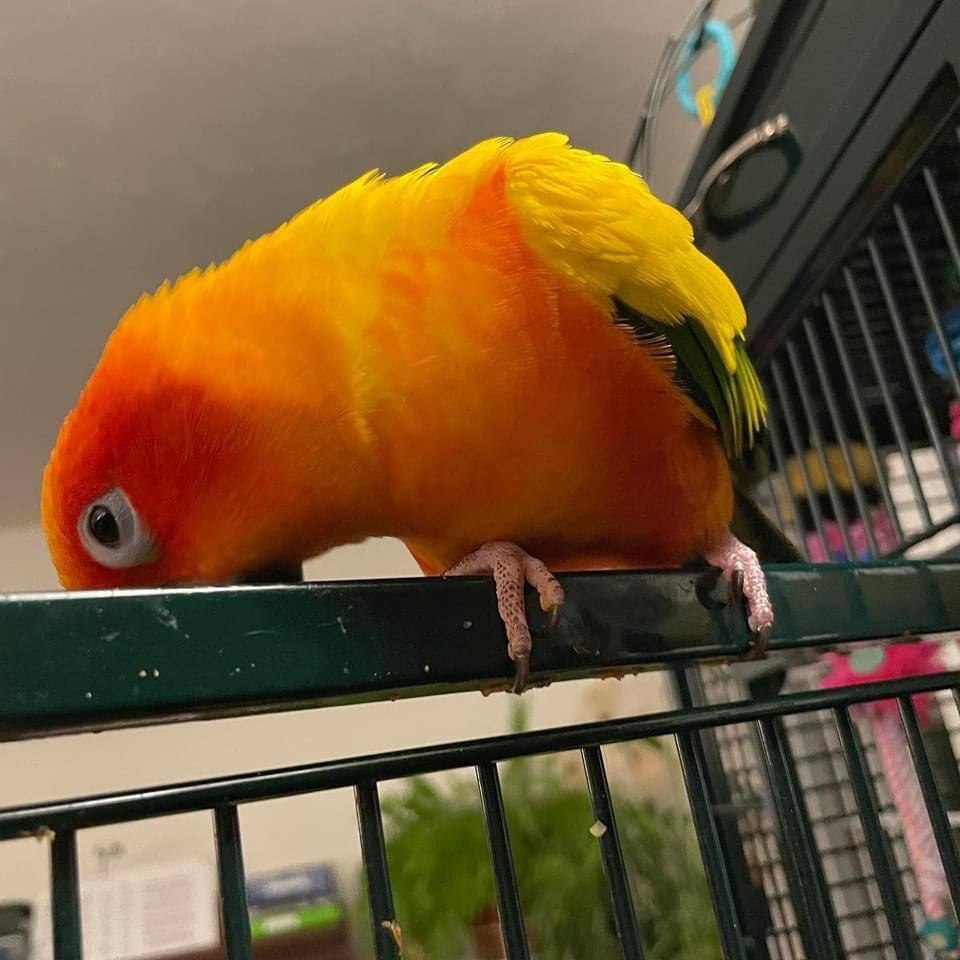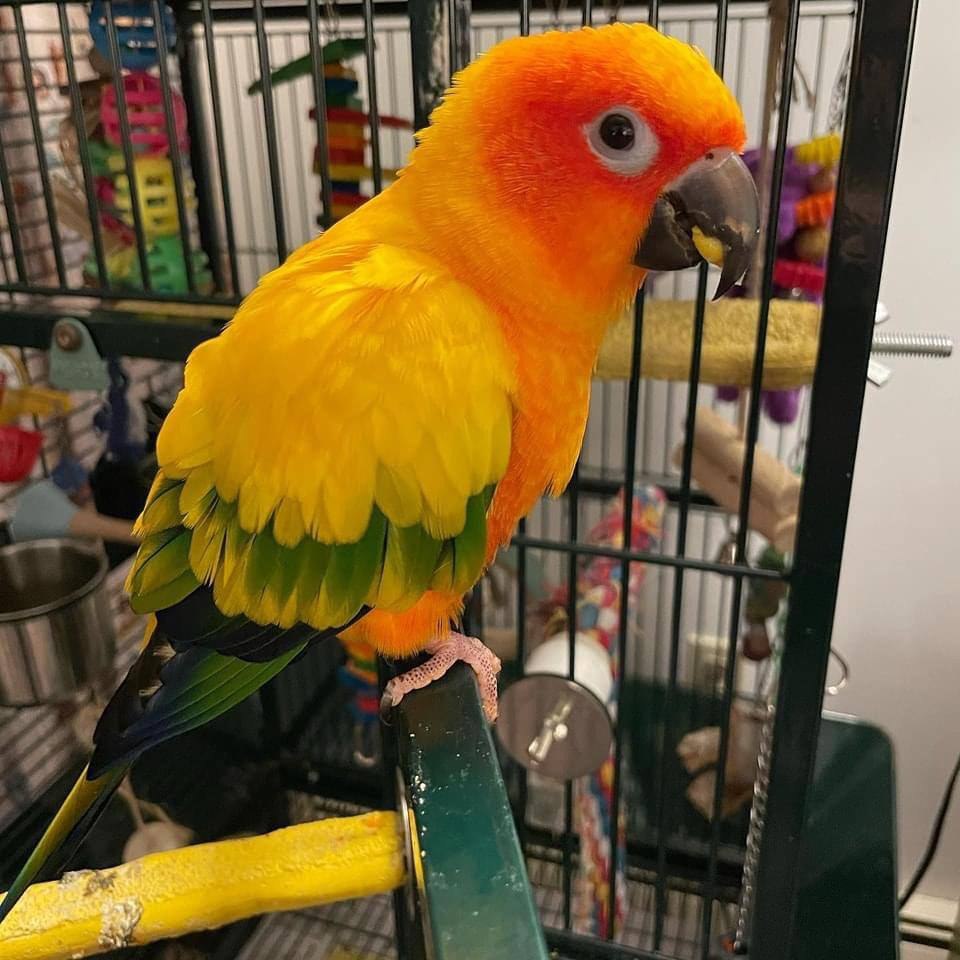 Sun Conures are famous for their high energy, social nature, and charming personalities, and She embodies all of this. She thrives on interaction, playtime, and bonding, making her an ideal companion for both families and experienced bird owners.