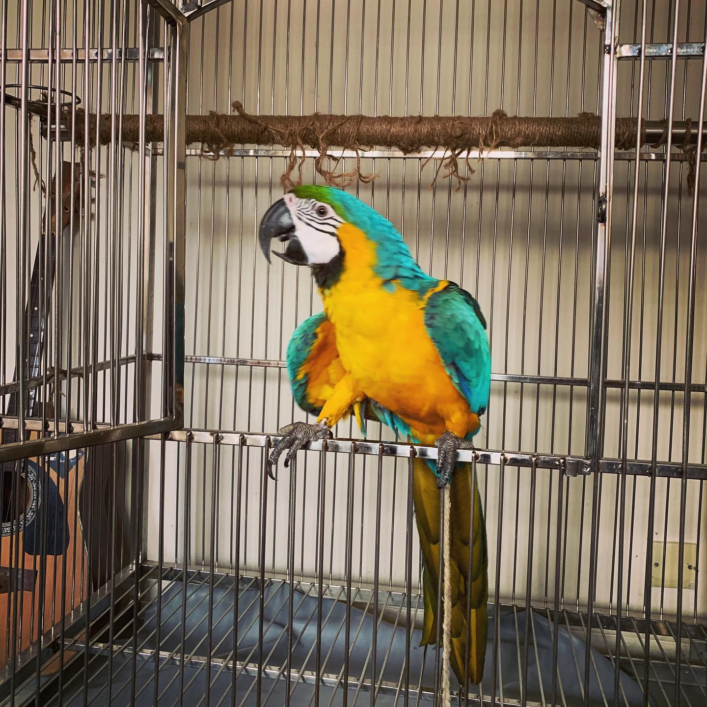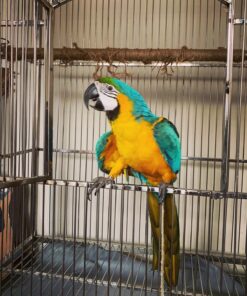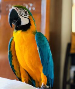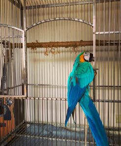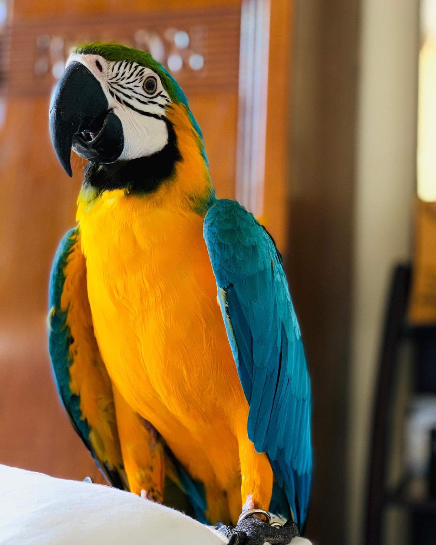 With her brilliant turquoise wings, vivid golden chest, and her outgoing personality, She is a show-stopping parrot and the perfect family companion.
