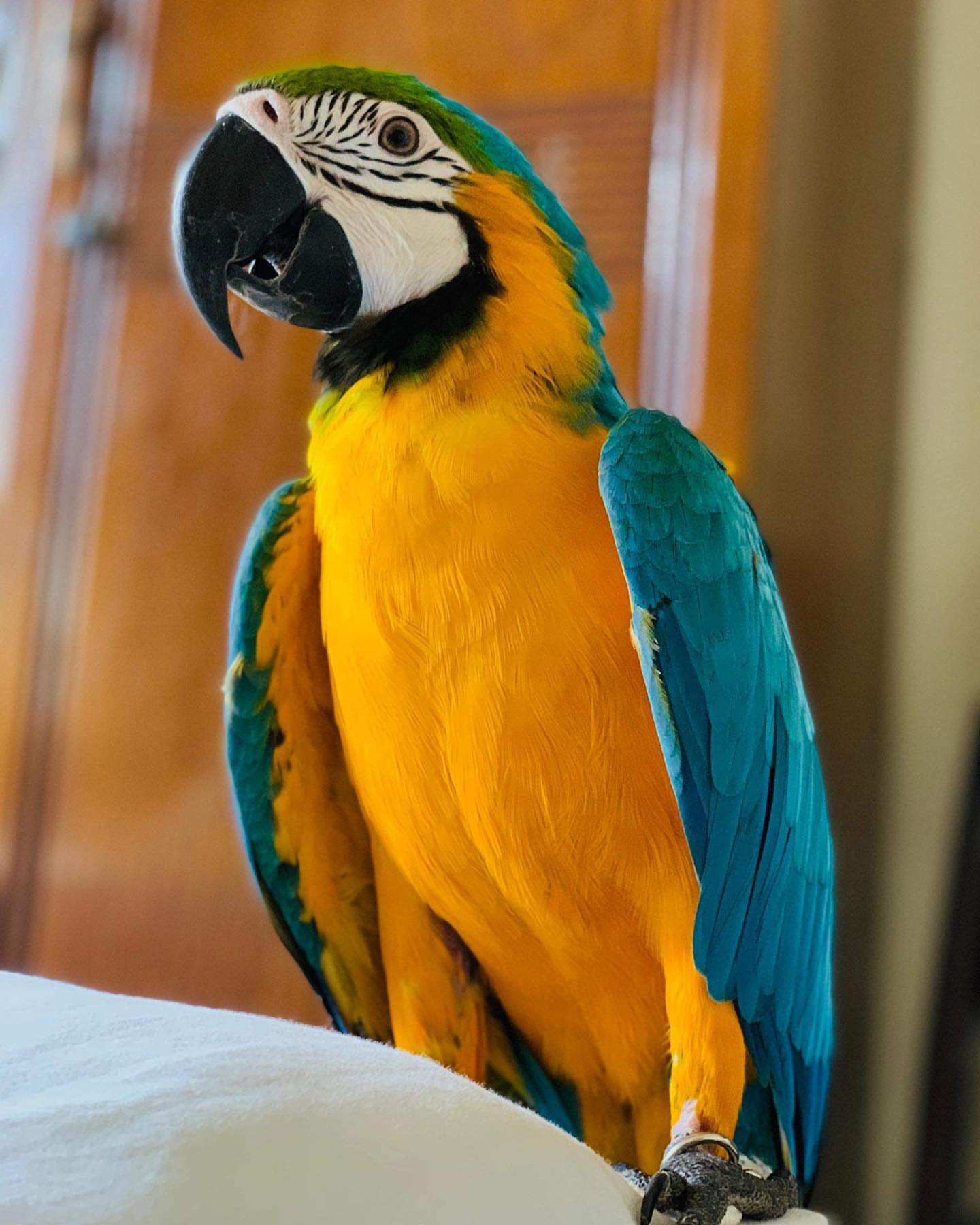 🌟 Meet Peanut – The Charming and Intelligent Blue and Gold Macaw