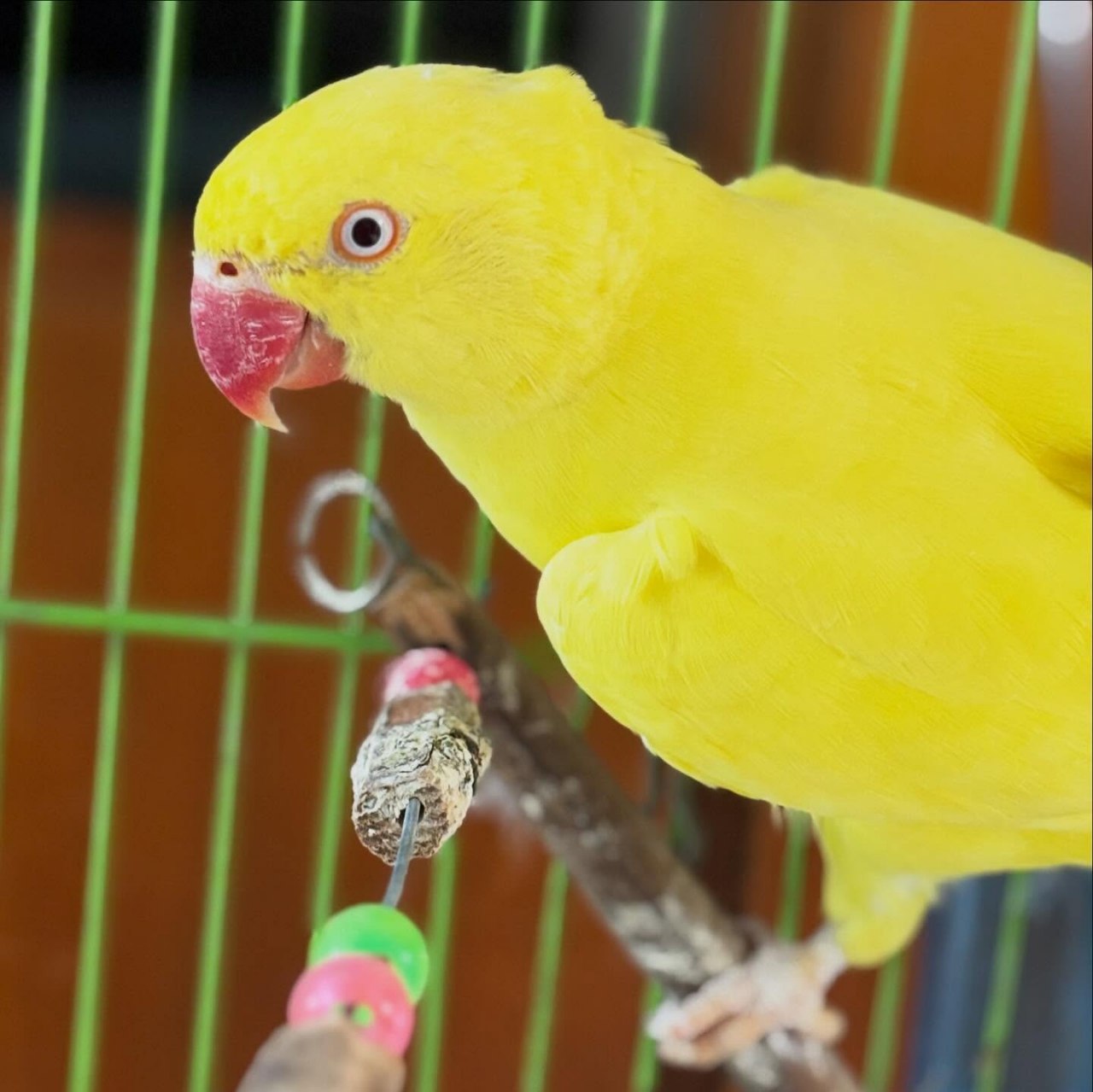 Indian Ringneck Parrots are unique in that they can be affectionate without being overly demanding. Sarah enjoys interaction and bonding time but also appreciates independence. This balance makes her an ideal pet for owners who want companionship without constant attention requirements.
