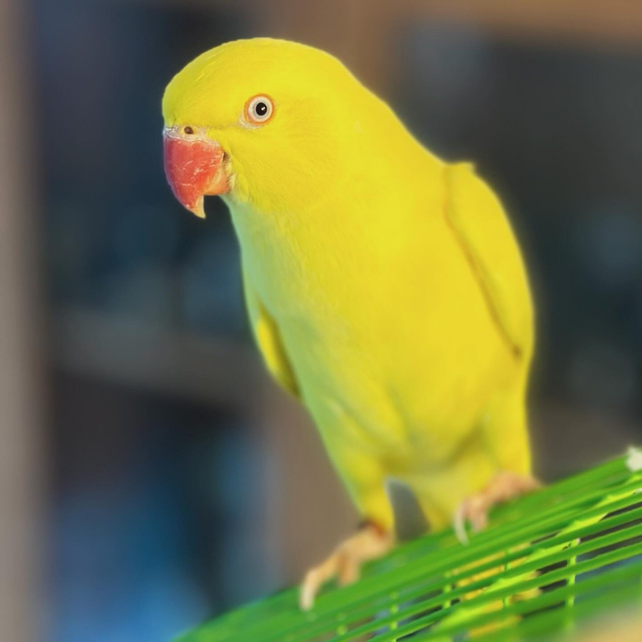 Sarah is confident, observant, and naturally curious. She enjoys exploring her surroundings, interacting with toys, and watching household activity. Her personality reflects the intelligence and adaptability that make Indian Ringneck Parrots such popular companion birds.